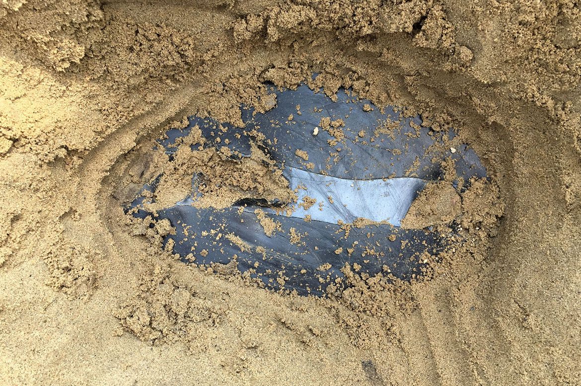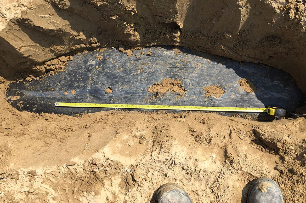 In this case, the geomembrane layer had been put under enormous pressure during the installation of the covering material, ultimately leading to the fault. It should always be remembered that geomembrane materials are not suitable for structural applications and should only be used to ensure a site’s impermeability and environmental integrity.