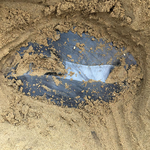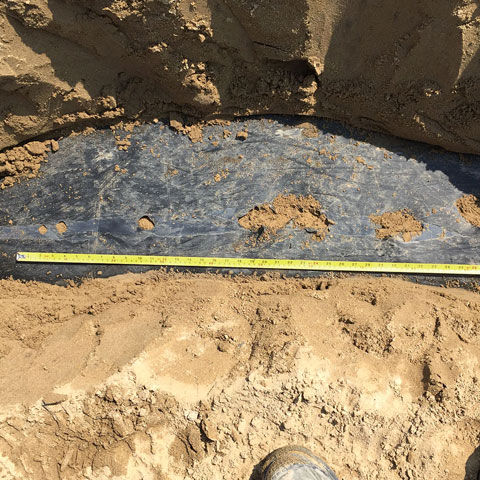 Below is a series of pictures of a rare fault in a polyethylene geomembrane (HDPE).