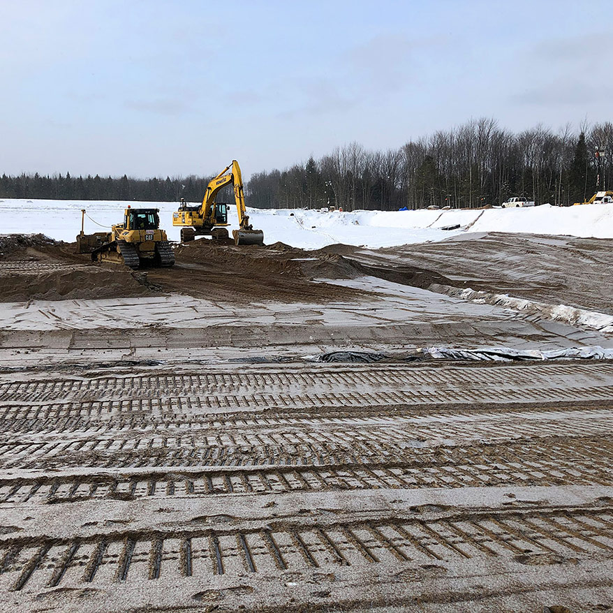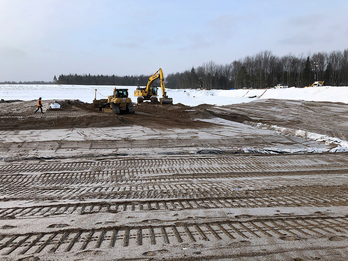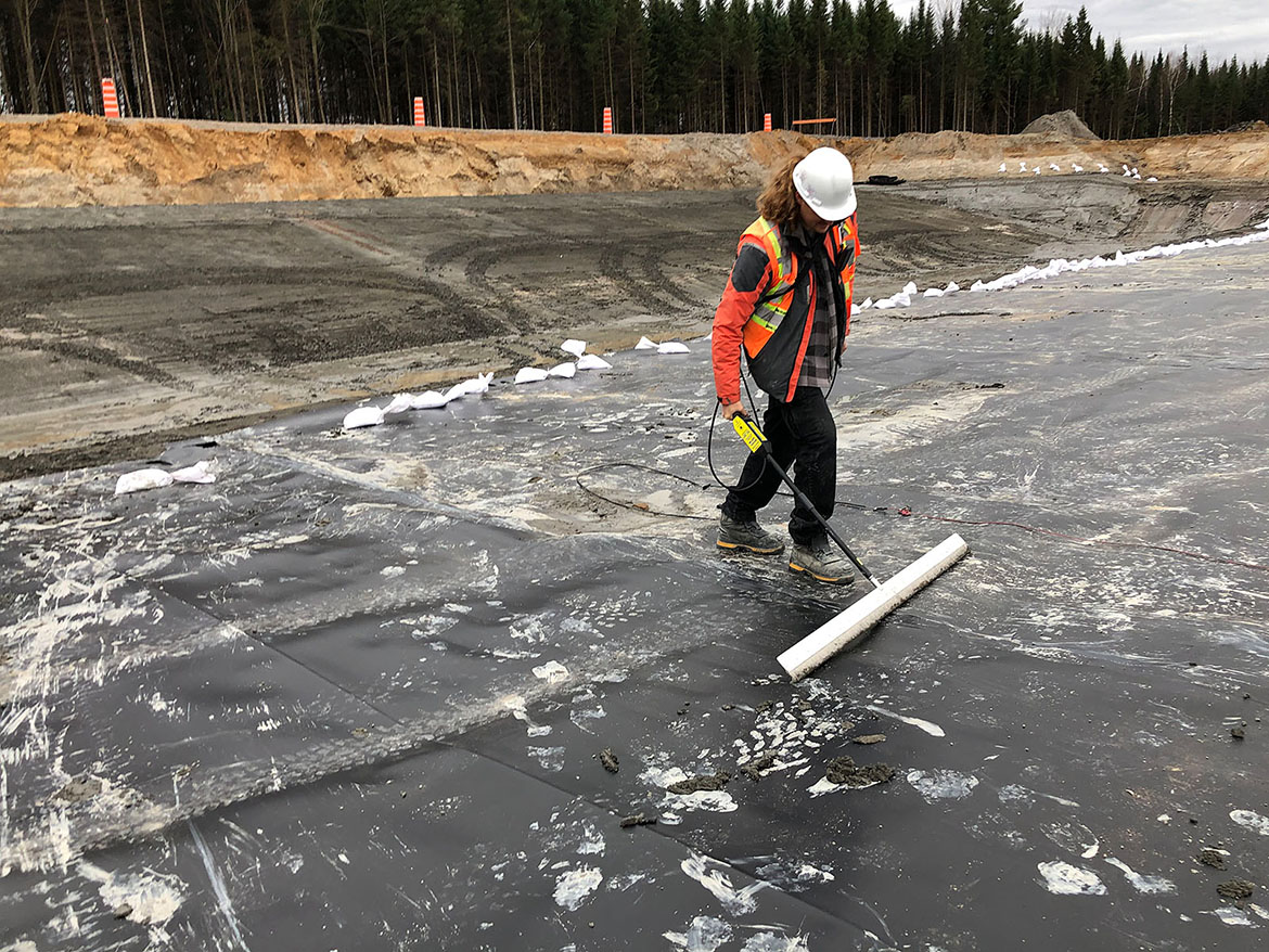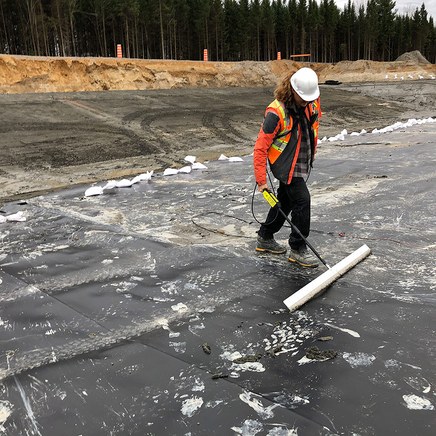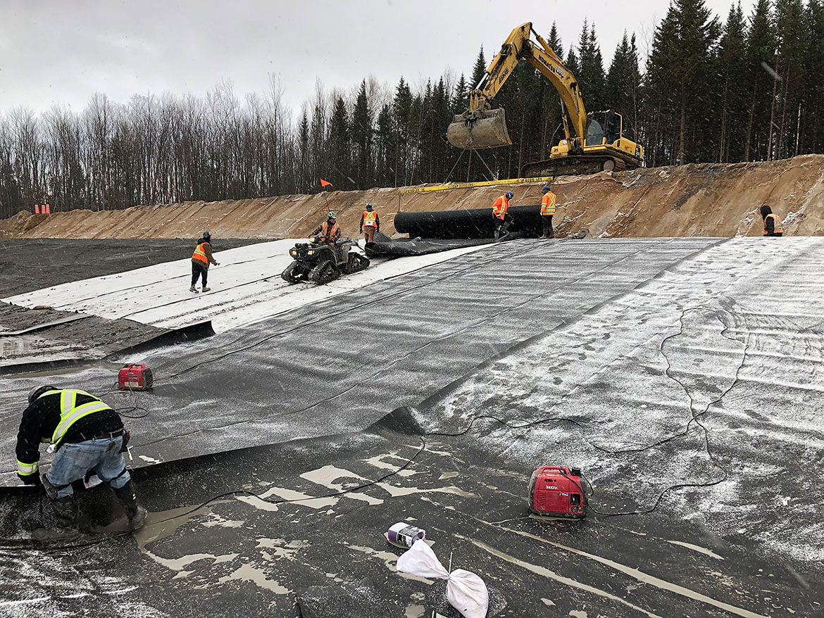 A new contaminated soil burial site was opened in 2020 in Bécancour, Québec, Canada. In order to ensure the overall quality of the structure and also to comply with the regulations on contaminated soils, each phase 1 geomembrane was tested after its installation and after the installation of the drainage and protection layer. The leachate pond has only one geomembrane as the top layer and has therefore only had one leak detection survey. The cell’s area is 12,500 m² and the pool is 3,200 m².