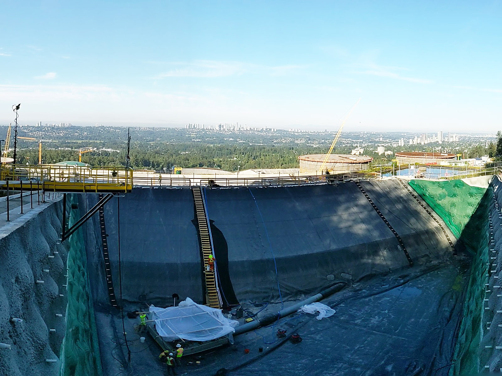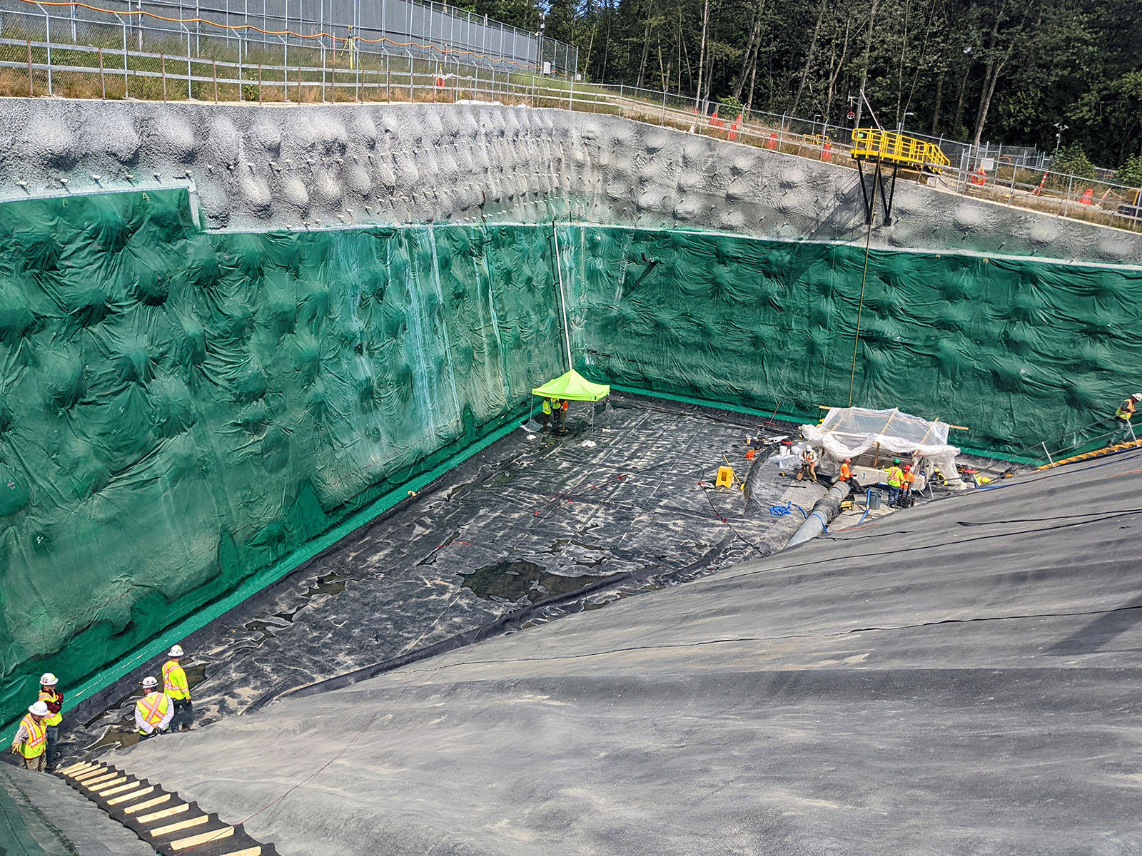 The black HDPE liner was installed and all other geosynthetics