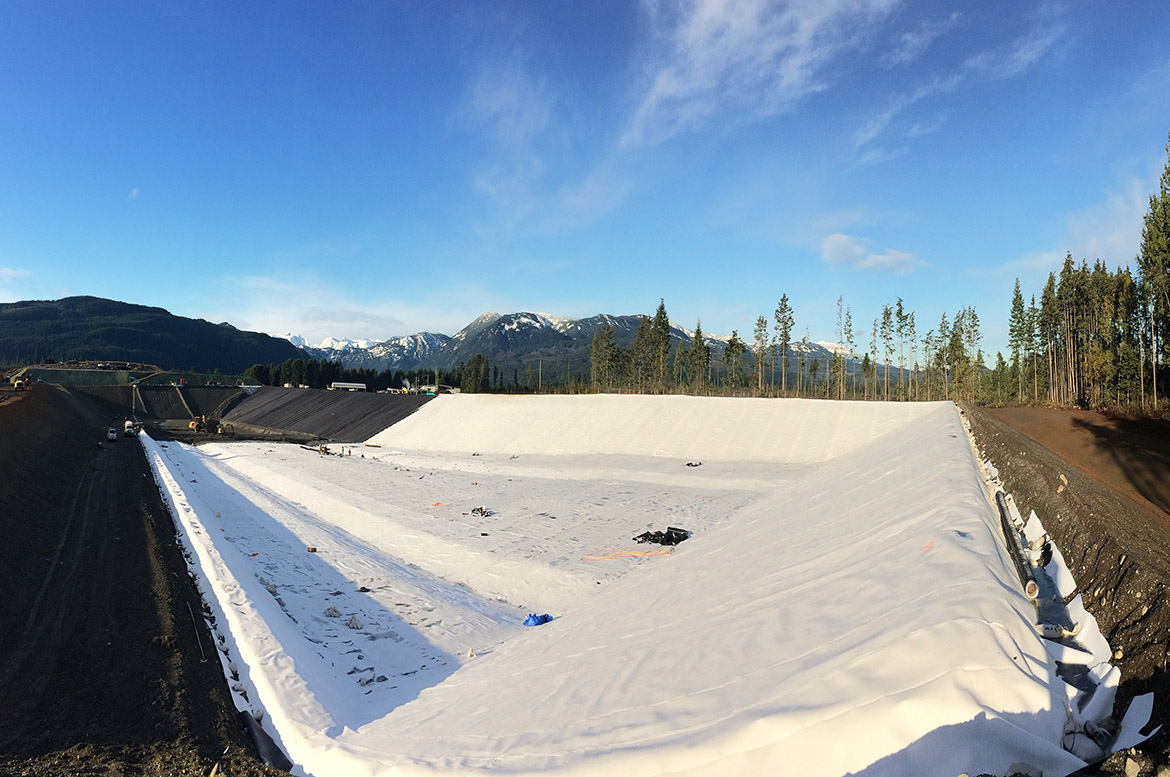 Groupe Alphard was mandated to perform a water puddle method electrical leak location survey over approx. 66,000 m2 of white conductive HDPE geomembrane and a dipole method survey over approx. 49,000 m2 following the installation of the gravel covering layer. The survey included all the geomembranes installed in the cell 1 as well as the leachate pond.