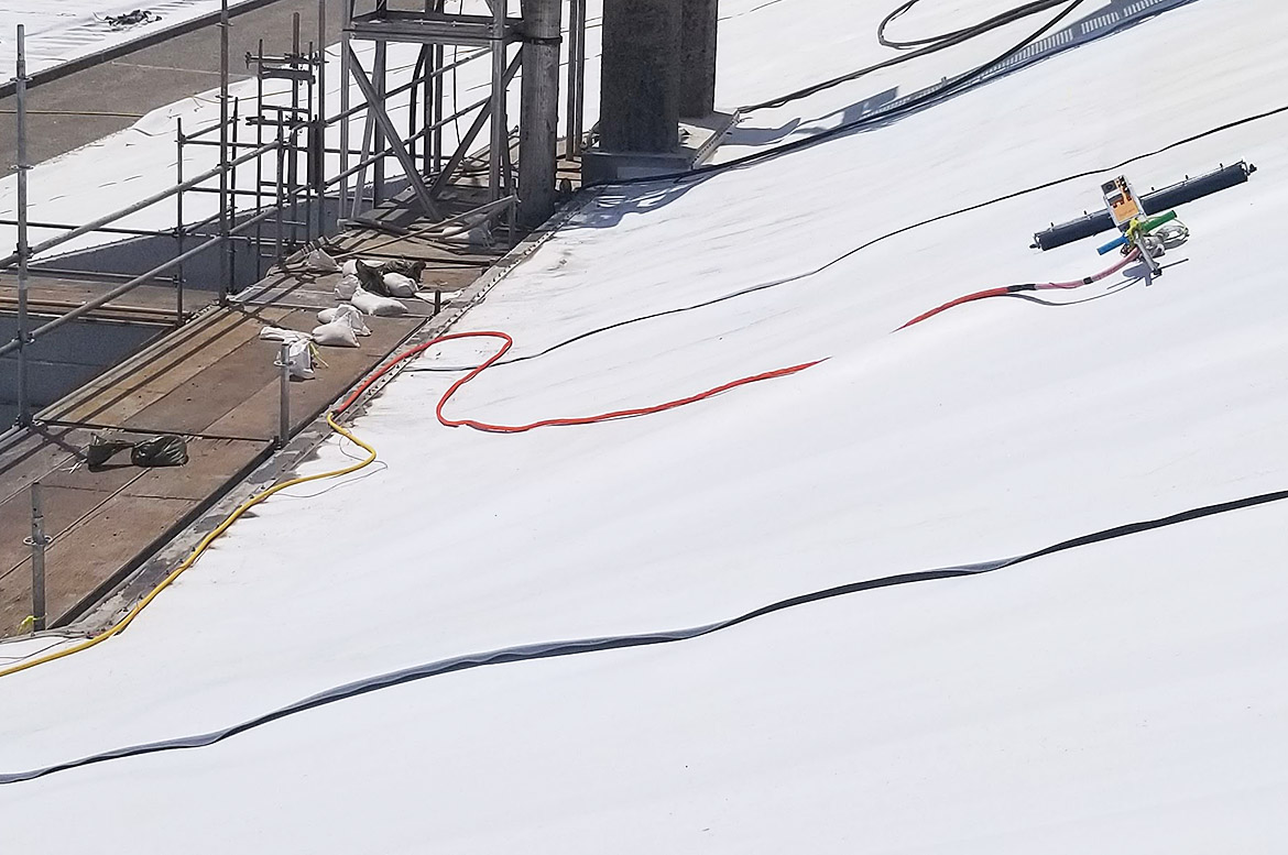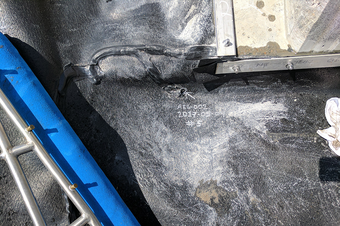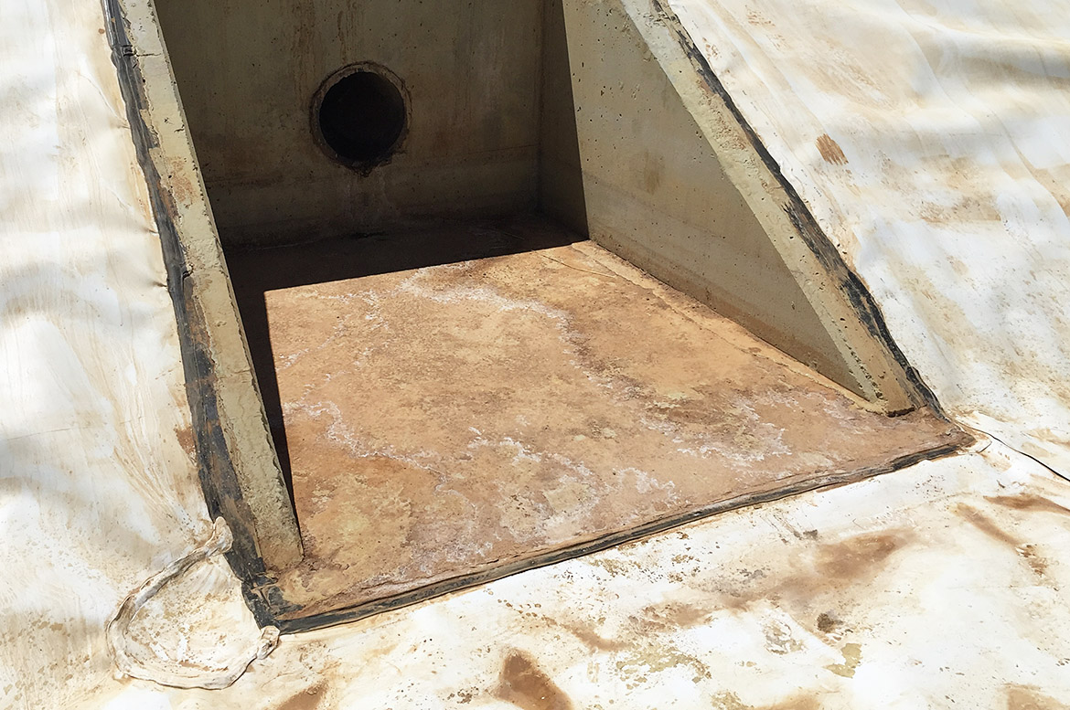 It is important to understand that geoelectrical leak location methods do not allow for the validation of joints between concrete sections and geomembrane layers. Vacuum box testing is also unlikely to be of use here, given the thickness of the mechanical anchor and the difficulty in ensuring an airtight seal between the vacuum box and the joint. The difficulty of effectively verifying these joints makes the installer’s experience, the choice of materials and the quality of the concrete section all the more important.