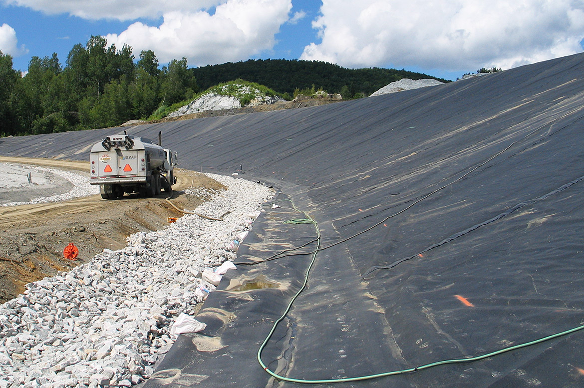 Leak location is often performed on a permanent capping layer in order to prevent rainwater infiltration and biogas leaks, allowing covered materials to dry out and improving site performance. However, using water based electrical leak location methods on an earth berm can pose technical difficulties, as water used in the survey will naturally flow towards the base of the berm and possibly enter in contact with the soil layer beneath the geomembrane.