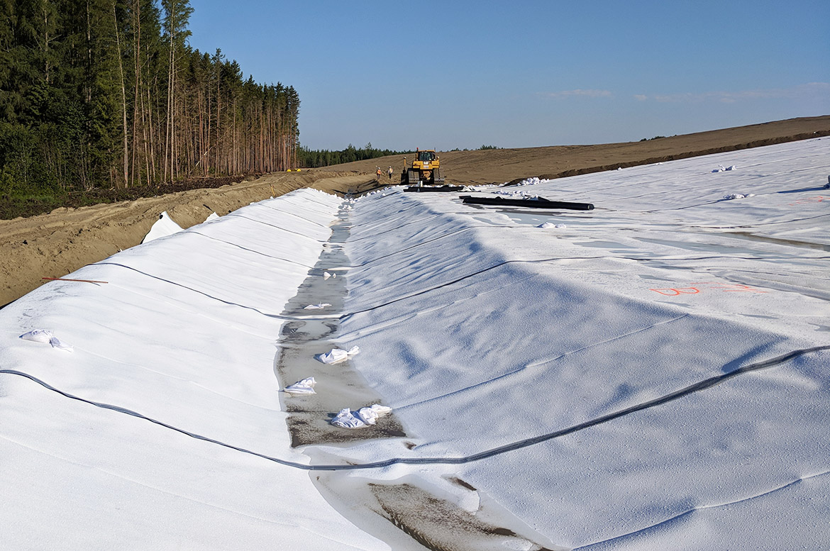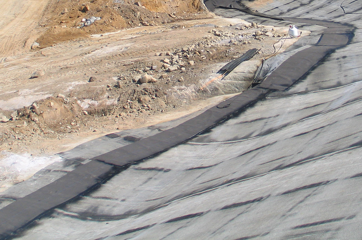 There are many methods to avoid this phenomenon, the easiest being to simply elevate the edges of the geomembrane layer with sandbags to allow water to accumulate at the base of the berm, making sure to periodically empty the accumulated water. However, this is not possible when the geomembrane layer is already anchored in place. In such cases, a temporary barrier of sandbags, bentonite or similar materials can be installed at the edge of the geomembrane layer to catch run-off water. On bituminous geomembrane, an additional band can be welded directly to the geomembrane layer at the base of the berm, which can then be elevated using sandbags.